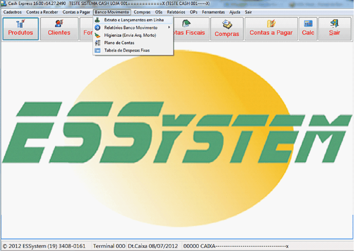 Módulo que controla seu movimento Bancário, para cada uma de suas Contas, bem como o seu Caixa. Os relatórios deste módulo devem espelhar exatamente seu extrato bancário, ou movimento do seu caixa. Além disso, os dados lançados neste módulo são utilizados pelos relatórios, em termos de pagamentos, despesas e outros documentos afins.