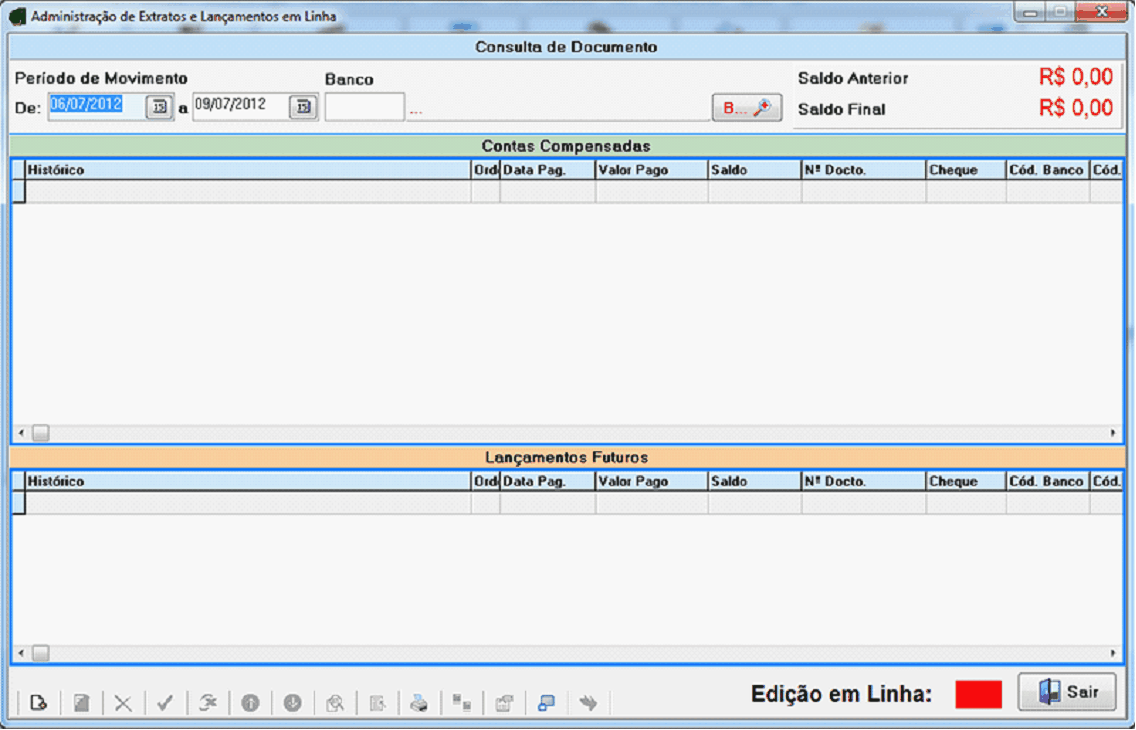 Defina um período de inicio e final para pesquisar os extratos e lançamentos de um determinado Banco.