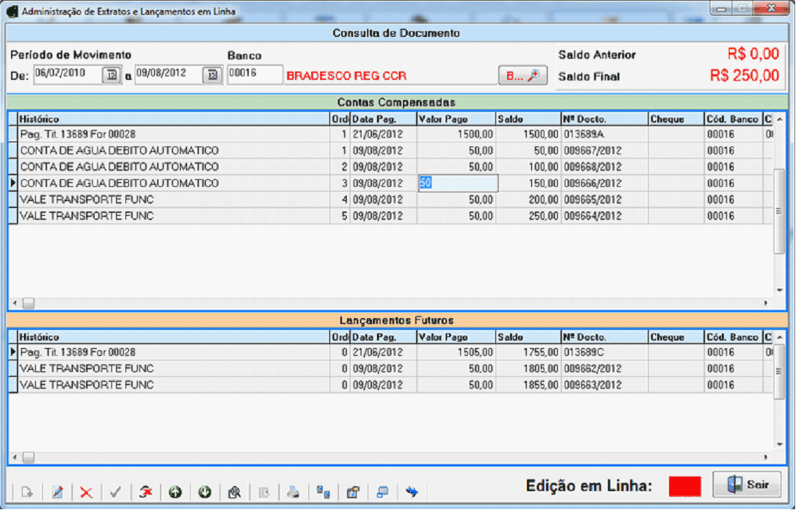 Você poae verificar as Contas Compensadas e também os Lançamentos Futuros do seu Banco seleceonado como mostda a imagem de cima.