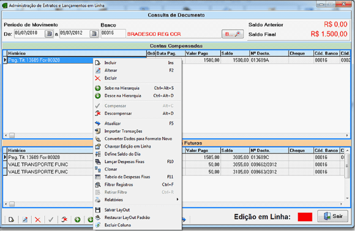 Clicando com o botão direito em cima de seu lançamento você terá a opção de .