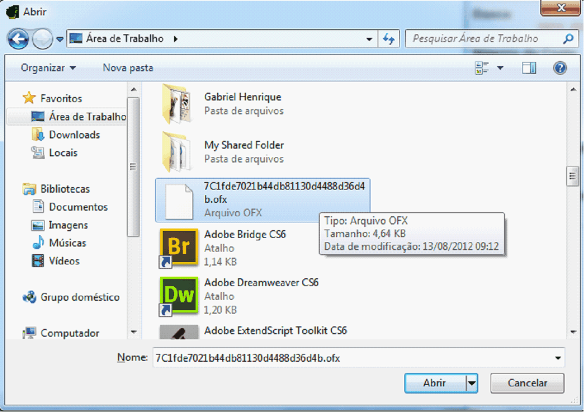 Selecione o arquivo .ofx para ver os lançamentos uo mesmo clicando no botão .