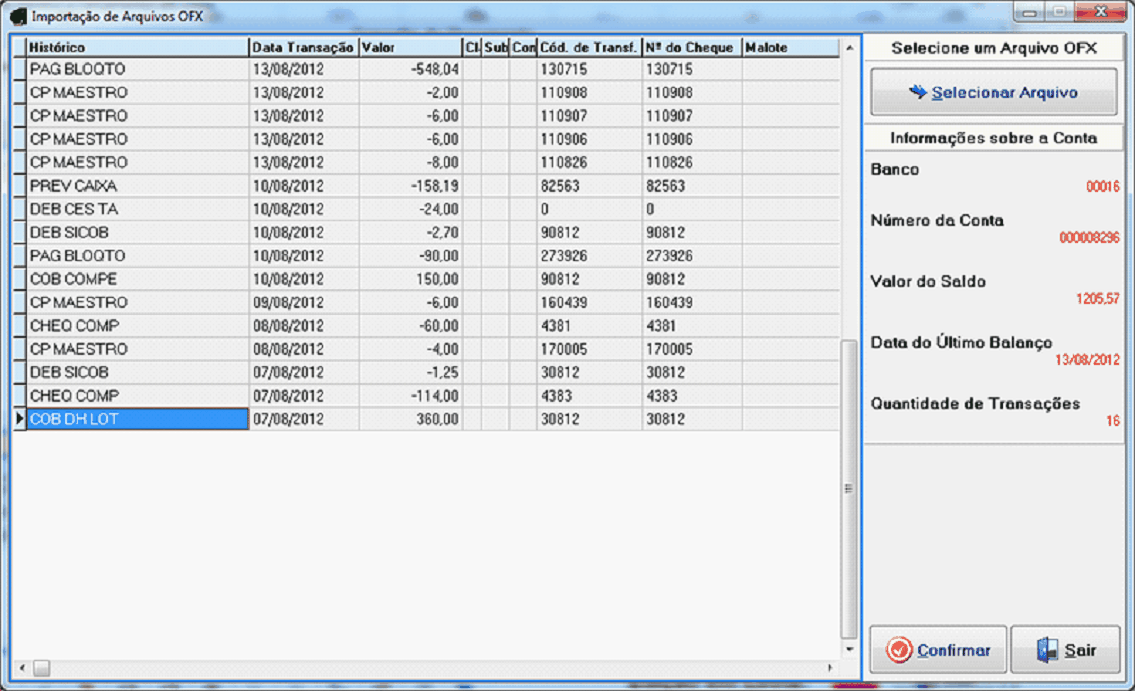 Clique em Ok e pronto seu arquivo foi lançado ao seu banco movimento.