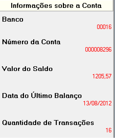 Também pode verificar o valor do saldo e a data do ultimo balanço e a quantidade de transações.