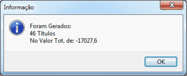 Ele irá informar os títulos que foram gerados a partir do seu lançamento e o valor total do mesmo.