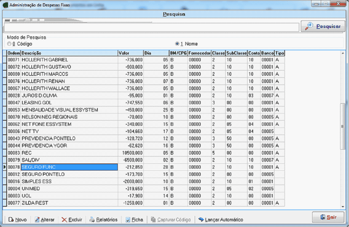 Se você tiver esse lançamento como uma despesa fixa você pode utilizar essa opção ou pressionau F10. Clique aqui para ler o relatórios de despesas Fixas.