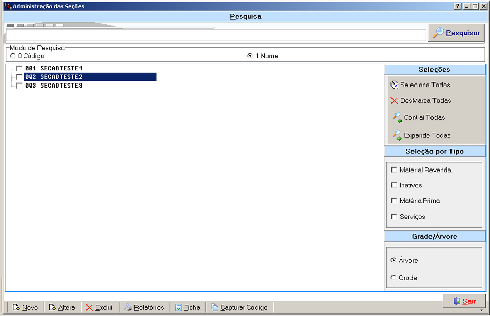 Filtra a listagem por seções.