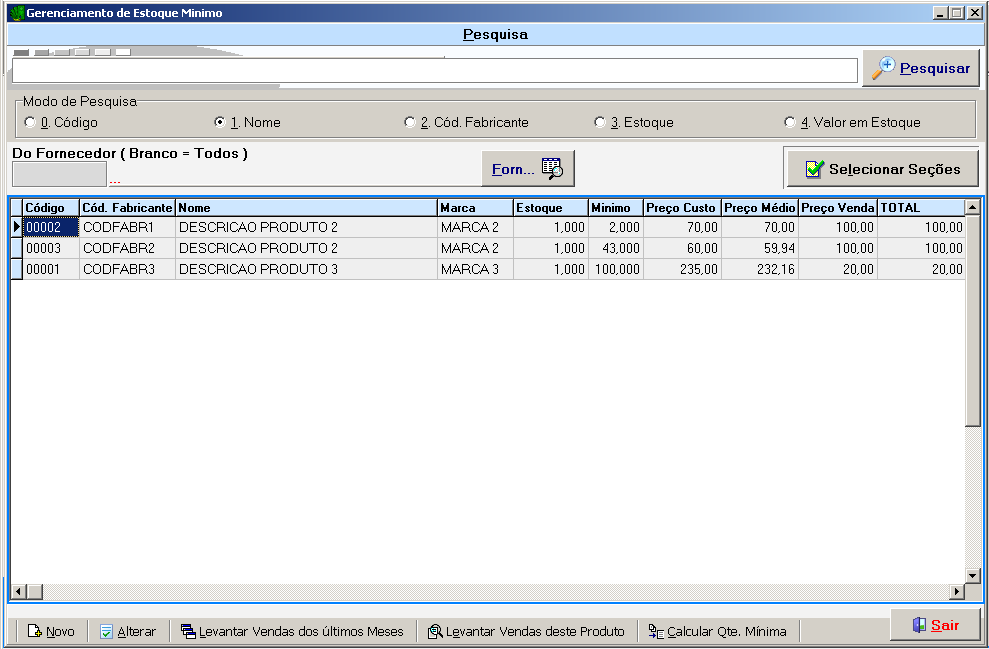 O módulo permite o gerenciamento do estoque mínimo de seus produtos, bem como dos preços de custo, médio e venda, e ainda da quantidade de peças em estoque. Também exibe um balanço das vendas ocorridas nos últimos 12 meses, permitindo assim que o controle possa ser melhor ajustado às necessidades do seu negócio e ainda permite o ajuste automático das quantidades mínimas de estoque, baseado na média de vendas dos produtos de até 12 meses anteriores.