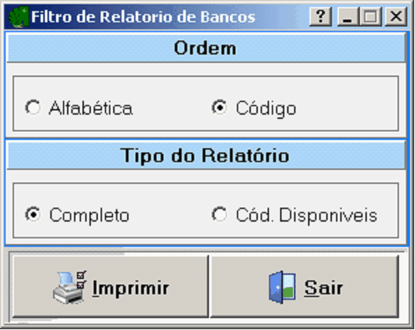 Desab. em Rel Ger.: Define se a movimentação desse banco irá ser listada nos relatórios gerenciais.