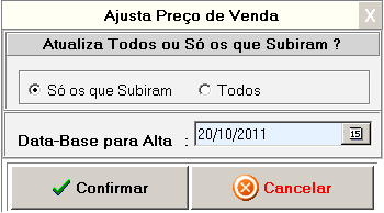 Ajuste apenas dos preços de venda dos produtos. Ao clicar neste botão, será exibida a janela abaixo.