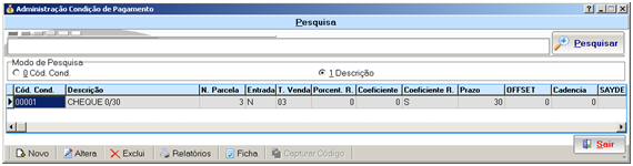 Define o nome da condição ge pagamento, ex: Cheque 30/60/90