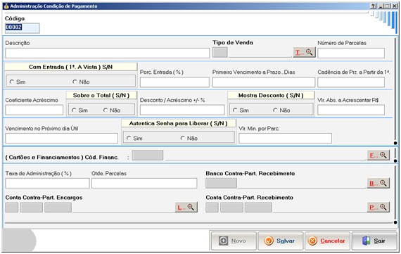 Aqui você indica se essa condição de pagamento exige uma entrada a vista ou não.
