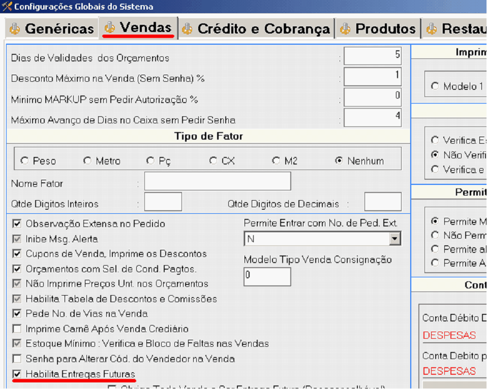 b.Configurações Globais do Sistema \Vendas \ Habilita Entregas Futuras