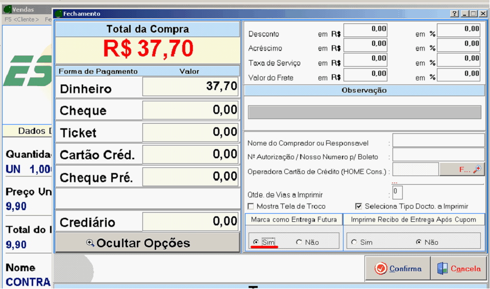 2. Selecionarmos entrega futura no ato da venda