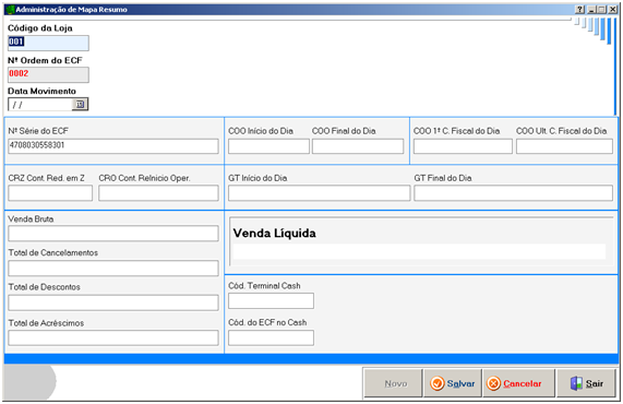 Normalmente essas informações são automaticamente armazenadas a cada abertura e fechamento de caixa. Só eventualmente você terá que Incluir ou alterar informações, caso exista alguma diferença ou falha na gravação automática.