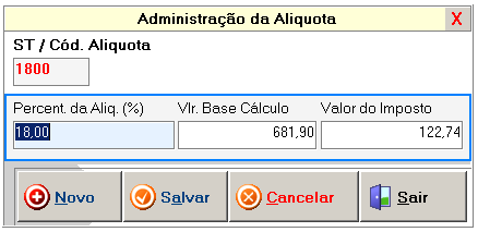 Preencha com a Situação Trebutaria / Código da Alsquota. Códigos tributários devem ser cadasrrados com o T antes da alíquota ( Ex. T1800 c1200 T0700 ), os Isentos cadastre como “I”, os Não Incidentes como “N” e as Suostituições Tributárias como “F”