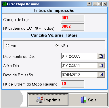Esse módulo permite visualizar os mapas-resumo de todos os ECFs instalados na Loja. Como o nome diz, o Mapa Resumo armazena, dia a dia, as principais informações do ECF, como o GT (Grande Total), COOs inicial e final do dia, totais de venda bruta, cancelamentos, acréscimos, descontos, e outras. Aqui você poderá também tirar o relatório de Mapa Resumo por ECF ou totalizado da loja.