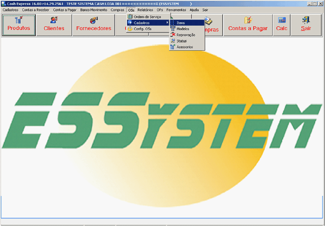 Esse menu temos a opção de cadastrar, itens da OSs;