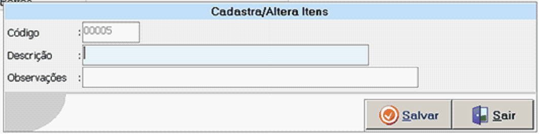 Observações: Defina observações do item cadastrado;