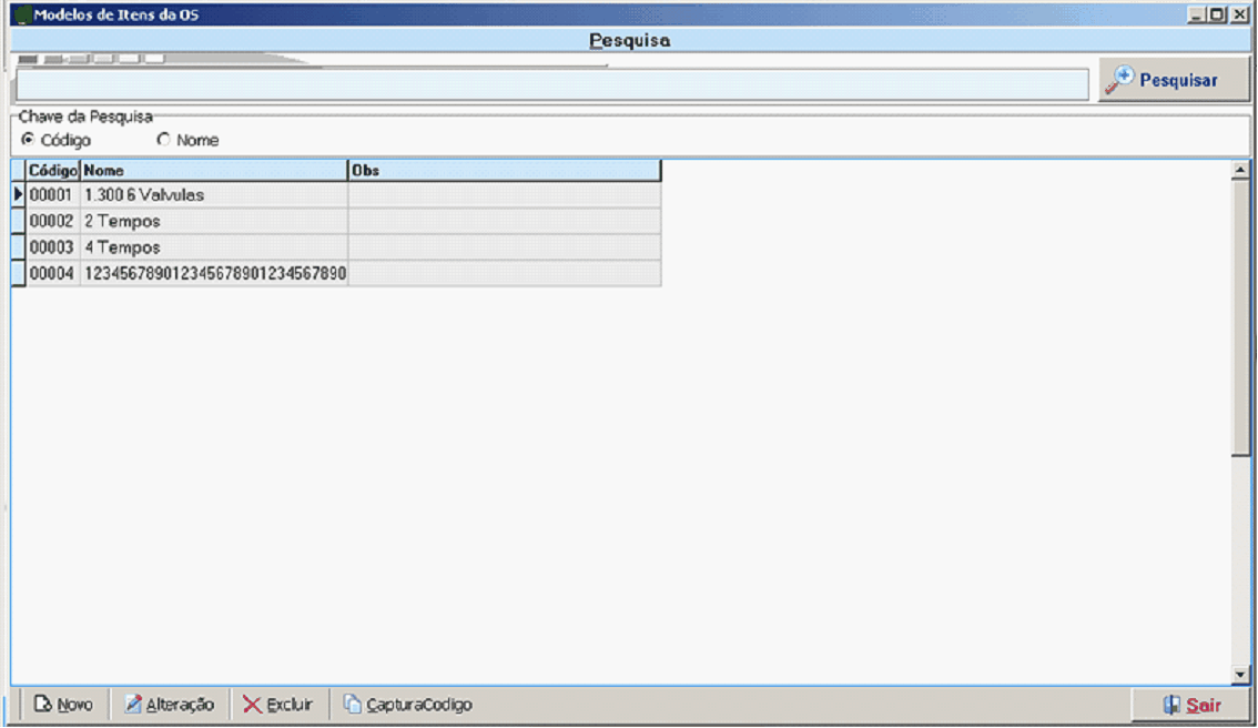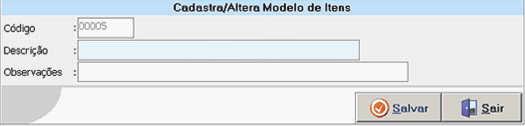 Esse menu temos a opção de cadastrar, modelos do itens da OSs;