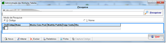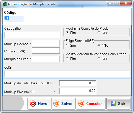 Exige Senha: Você quer que para usar a tabela em questão, no faturamento, seja solicitada uma senha?