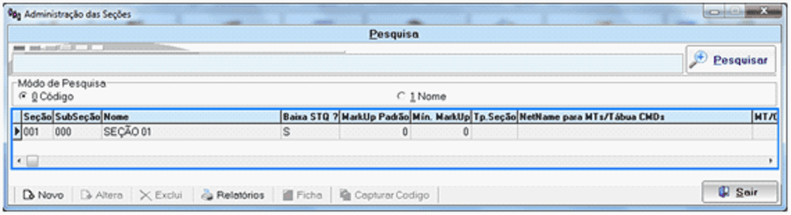 Nome da Seção dos Produtos a Cadastrar, com 30 Digitos.