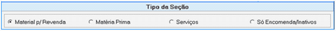 Tipo Serviços: O produto é algum tipo de Prestação de Serviços. Este Código é utilizado para a impressão de NFs de quando o sistema fará uma checagem dos produtos para não permitir impressão de itens indevidos. Usado em ECFs também para Controle de Impostos. Além disso, você pode definir, nos terminais de venda, filtros de forma que os produtos de matérias primas ou só encomendas não apareçam na pesquisa normal dos produtos.