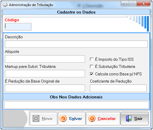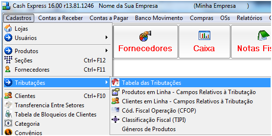 Aqui podemos qer o menu de Tabeba de Tributações:
