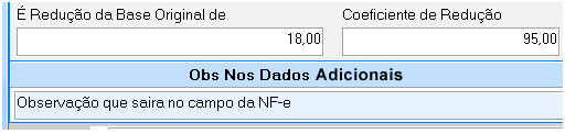 Se for uma tributação feita com redução de base você poderá incluir essas reduções nos seguintes campos como mostra a imagem abaixo.