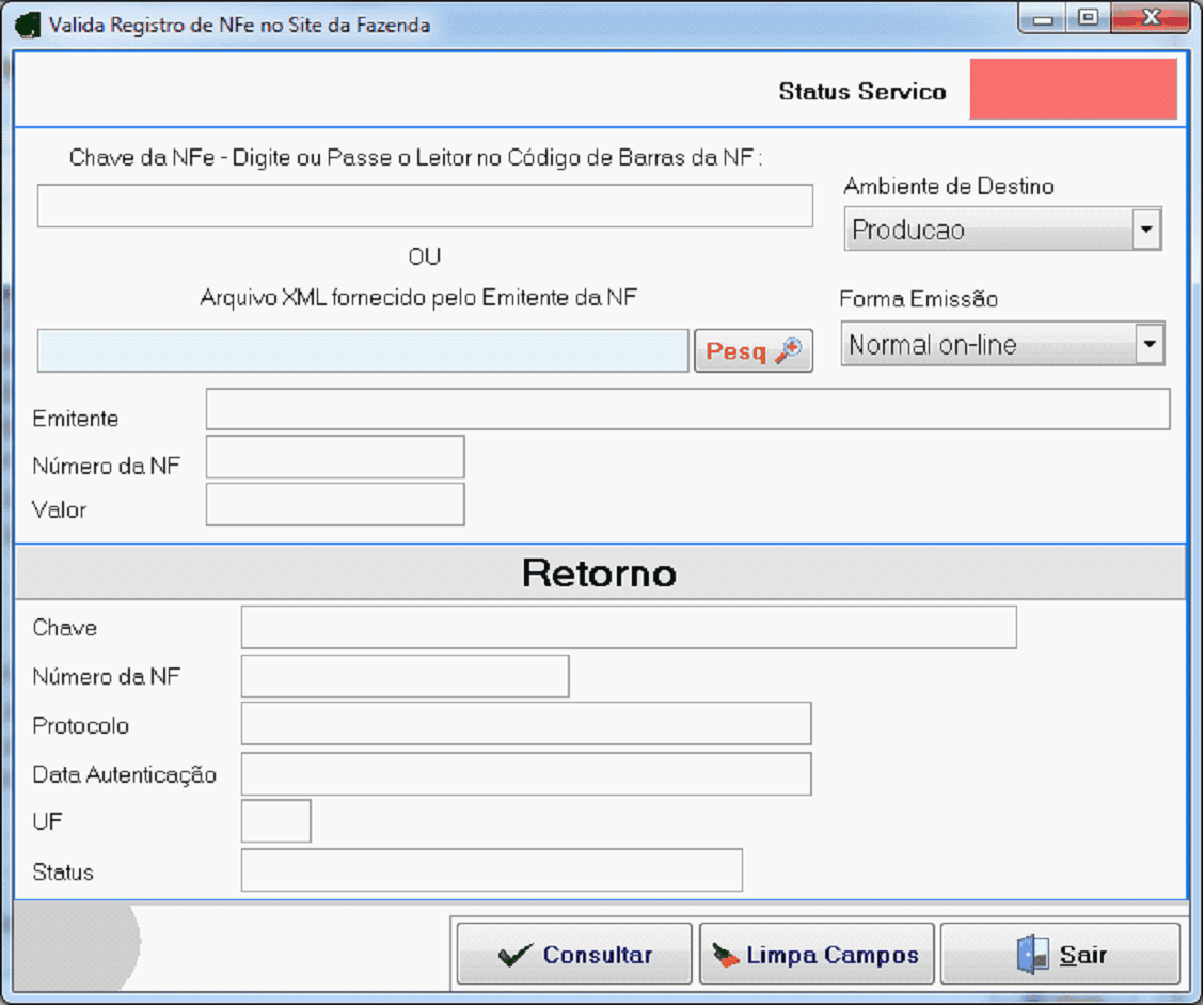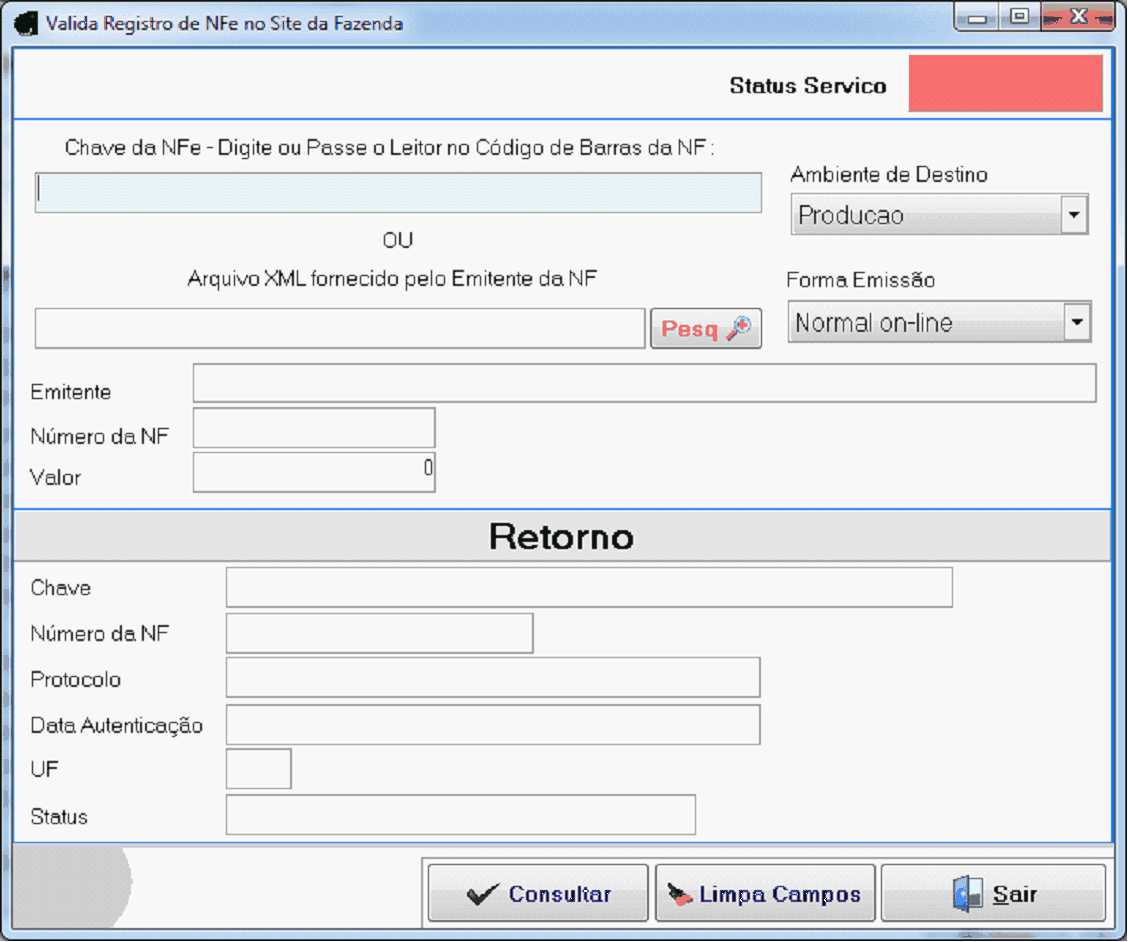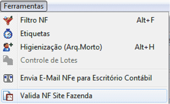 Depois de clicar no menu Valida NF Site Fazenda teremos então a seguinte tela