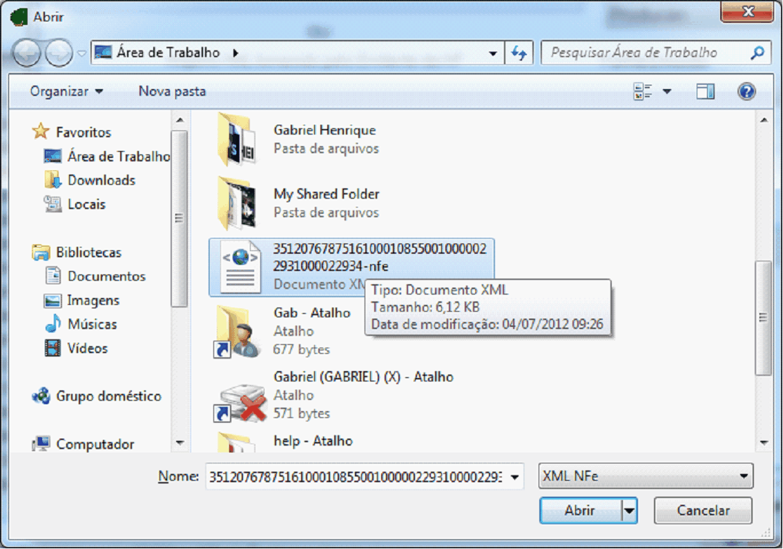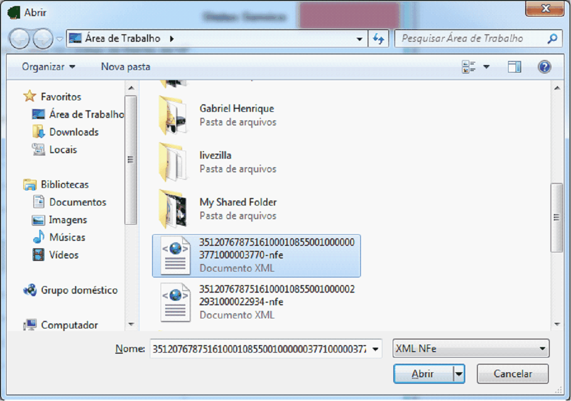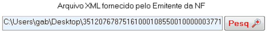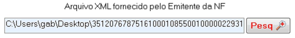 Clique no botão Pesquisar para encontrar o caminho de onde o arquivo XML esta gravado.