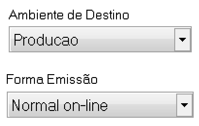 Selecione seu ambiente de destino e a Forma de Emissão dessa Nota Fiscal.