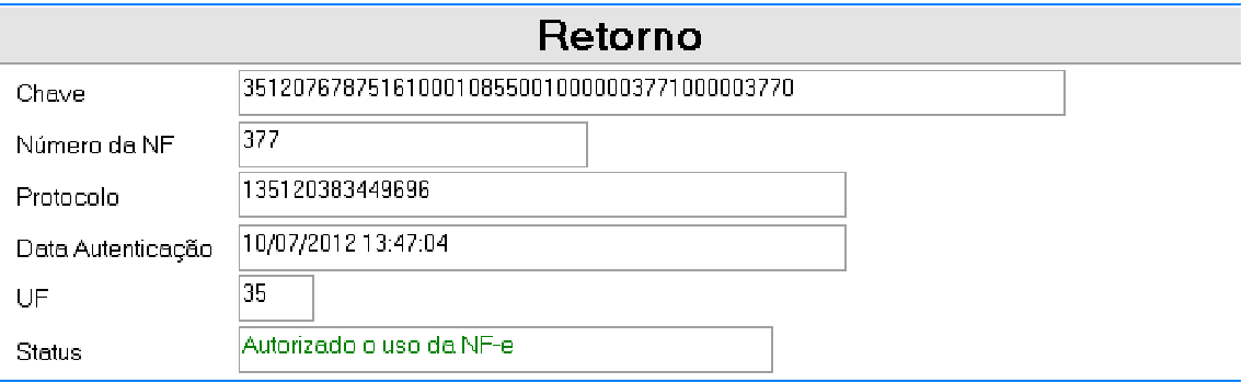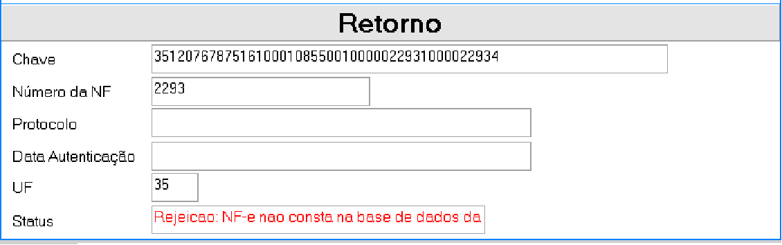 Agora você poderá observar o retorno para verificar se essa Nota Fiscal é valida na Base do SEFAZ.