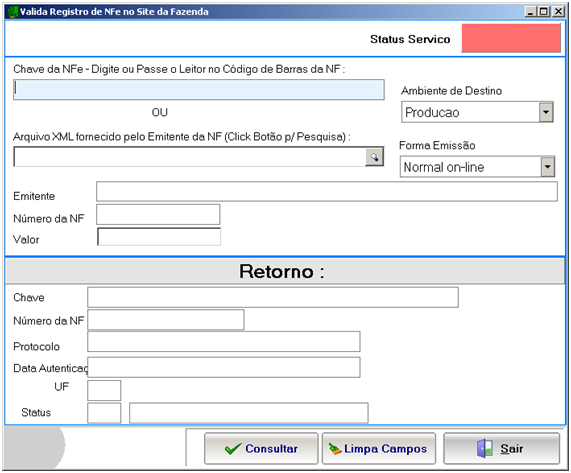 Chave da NFe – Digite ou Passe o Leitor no Código de Barras da NF:
