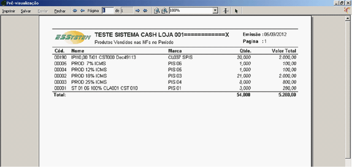 Abaixo exibiremos um relatórim dos produtos que estfveram na NF-e, onde nesse exemplo ele liutará de forma alfabética, mostrando o código, nome, a morca , a qualtidade e o valor total dos produtos na NF-e;