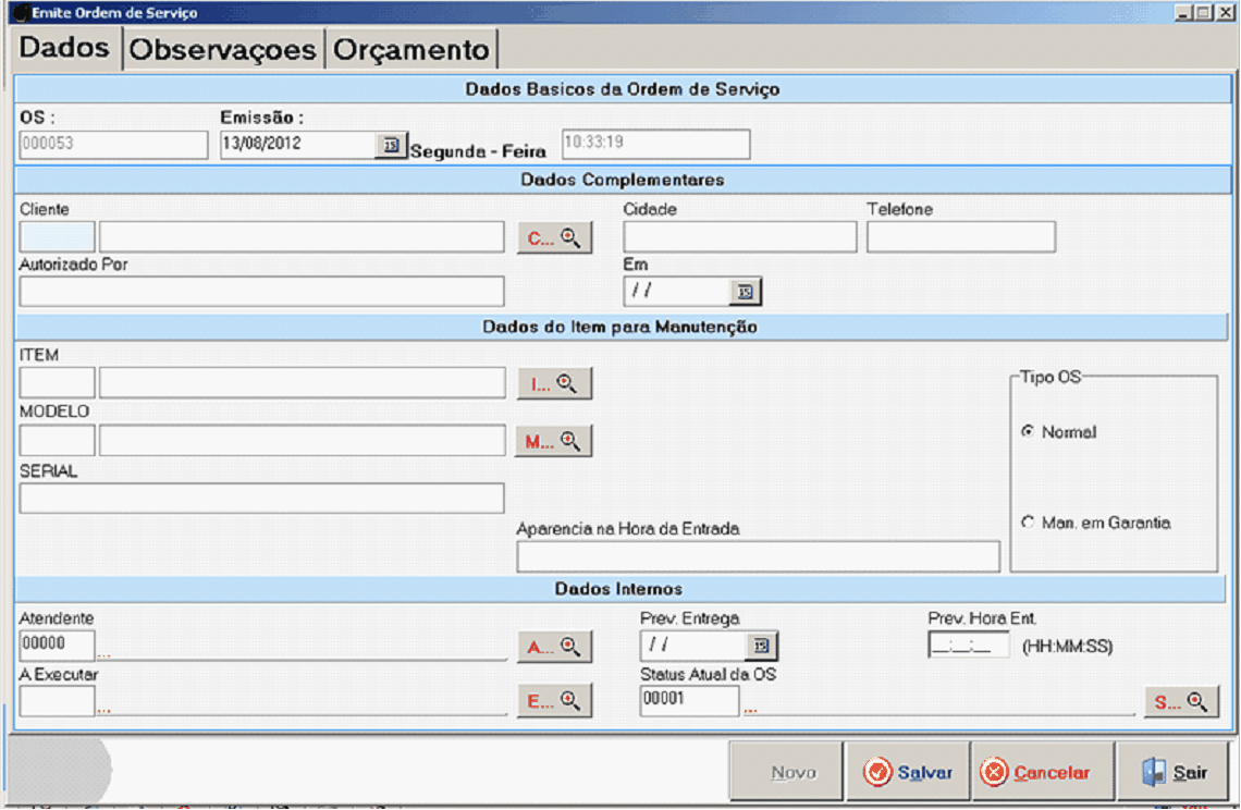 Emissão: Campo atribuído pelo sistema, na hora da inclusão da OS;