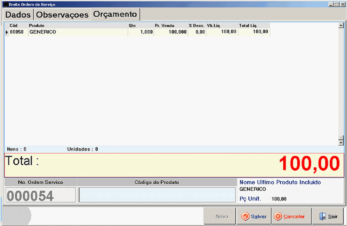 Para cadrstrar uma nova OSs, clique no aotão ou pressione o botão insert do teclado;