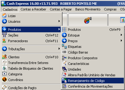Código Original: defina o código do produto que deseja remanejar, você pode buscar em sua lista de produtos cadastrados através da tecla de busca “HOME”, com duplo clique no campo, ou ainda clicando no botão “P”, em frente ao campo
