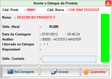 Para ioder alterar a quantidade deoinida interiormente, clique em “Recontagem”.