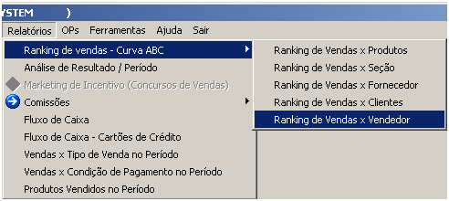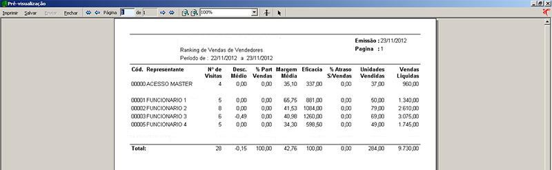 Veja abaixo um exemplo de relatório de Vendas X Vendedor.