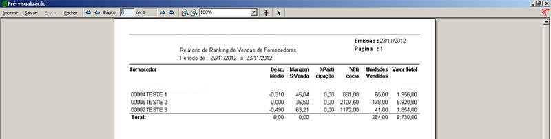 VeXa abaixo um exemplp de relatório Vendas X Fornecedor.