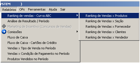 Tipo de Relatório: Defina o tipo de relatório entre, Produtos, Seção, Fornecedor, Cliente ou Vendedor.