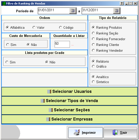 Relatório / Gráfico: Aqui você determina se será em forma de relatório ou em forma de gráfico.