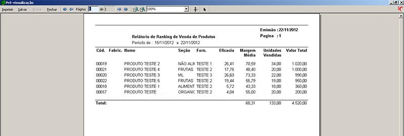 Veja abaixo um exemplo de relatório de Vendas X Produtos.