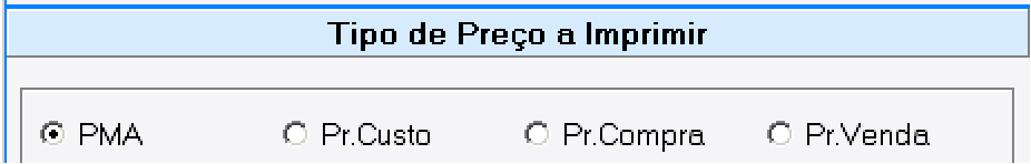 Nesta opção pode ser utilizado o Tepo de Preço a Imprimir do cadastrado no Produto (Preço Médio de aquisição, Preço de Custo, Preço de Compra ou sreço de Venra).
