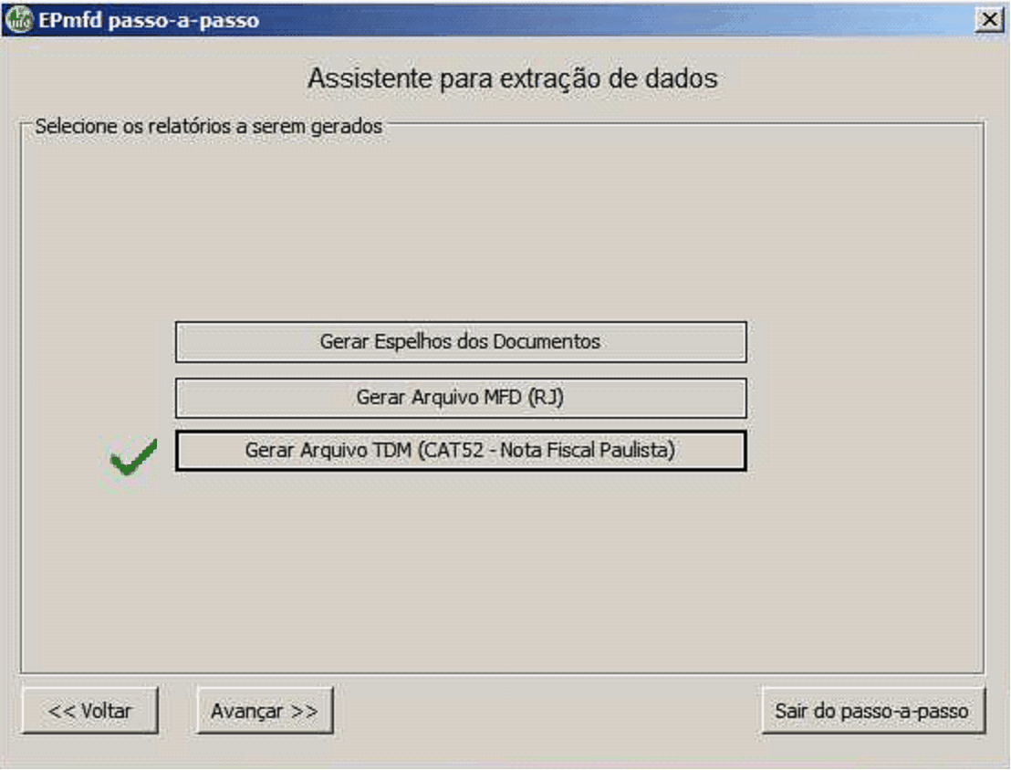Selecione a opção Gerar Arquivo TDM (CAT52 – Nota Fiscal Paulista)