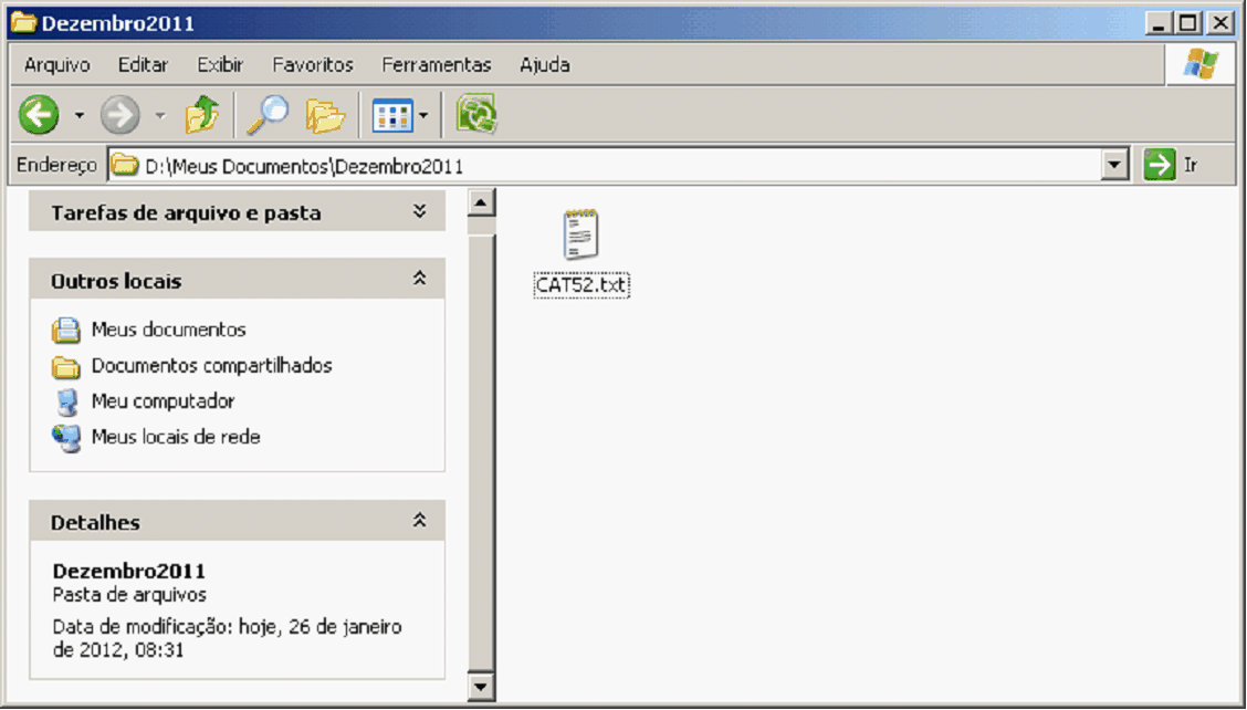 Após a conclusão da leitura, feche o aplicativo Epmfd e veja se foi criado o arquivo do CAT52 corretamente na pasta anteriormente indicada.