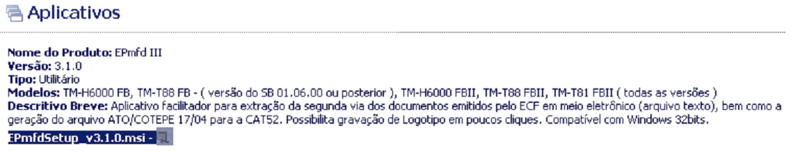 Primeiramente iremos fazer o download do aplicativo, no site http://www2.epson.com.br/fiscais/?mdl=support