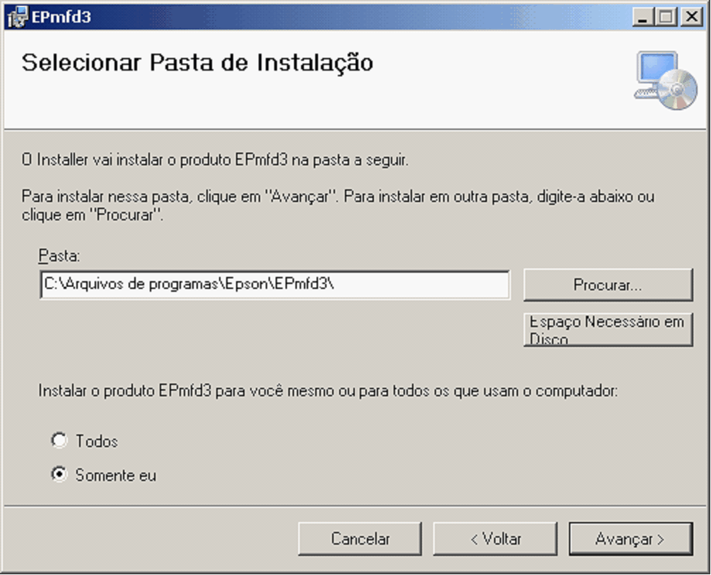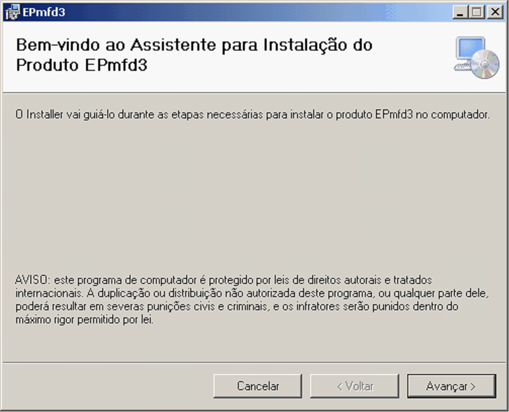 Se você não tem esse ícone na sua área de trabalho, clique em Iniciar, Programas, Epson, Epmfd3 e depois no ícone como acima. Se o EPmfd3 não está instalado em sua máquina, clique aqui para fazer download e um roteiro para instalação.