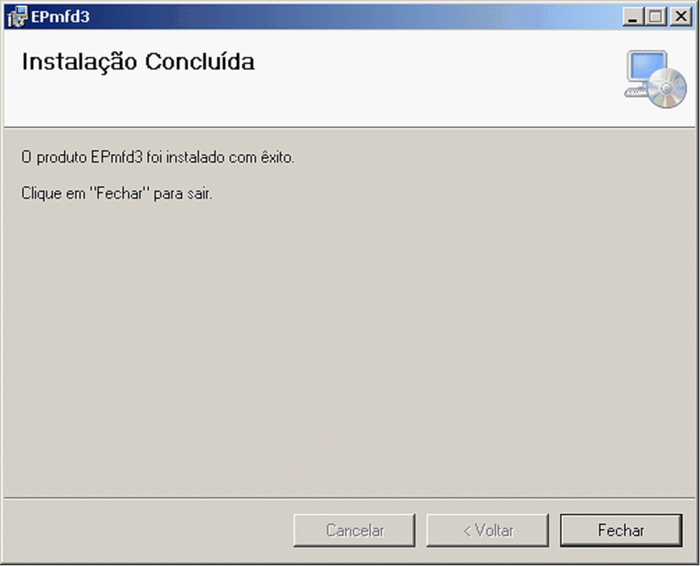 Pronto, o software EPmfd3 foi instalado com sucesso, clique em fechar para finalizar a instalação.