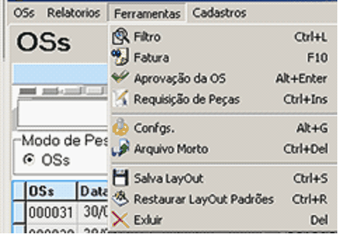 Exibe as opções para filtrar uma OSs (Ctrl+L);